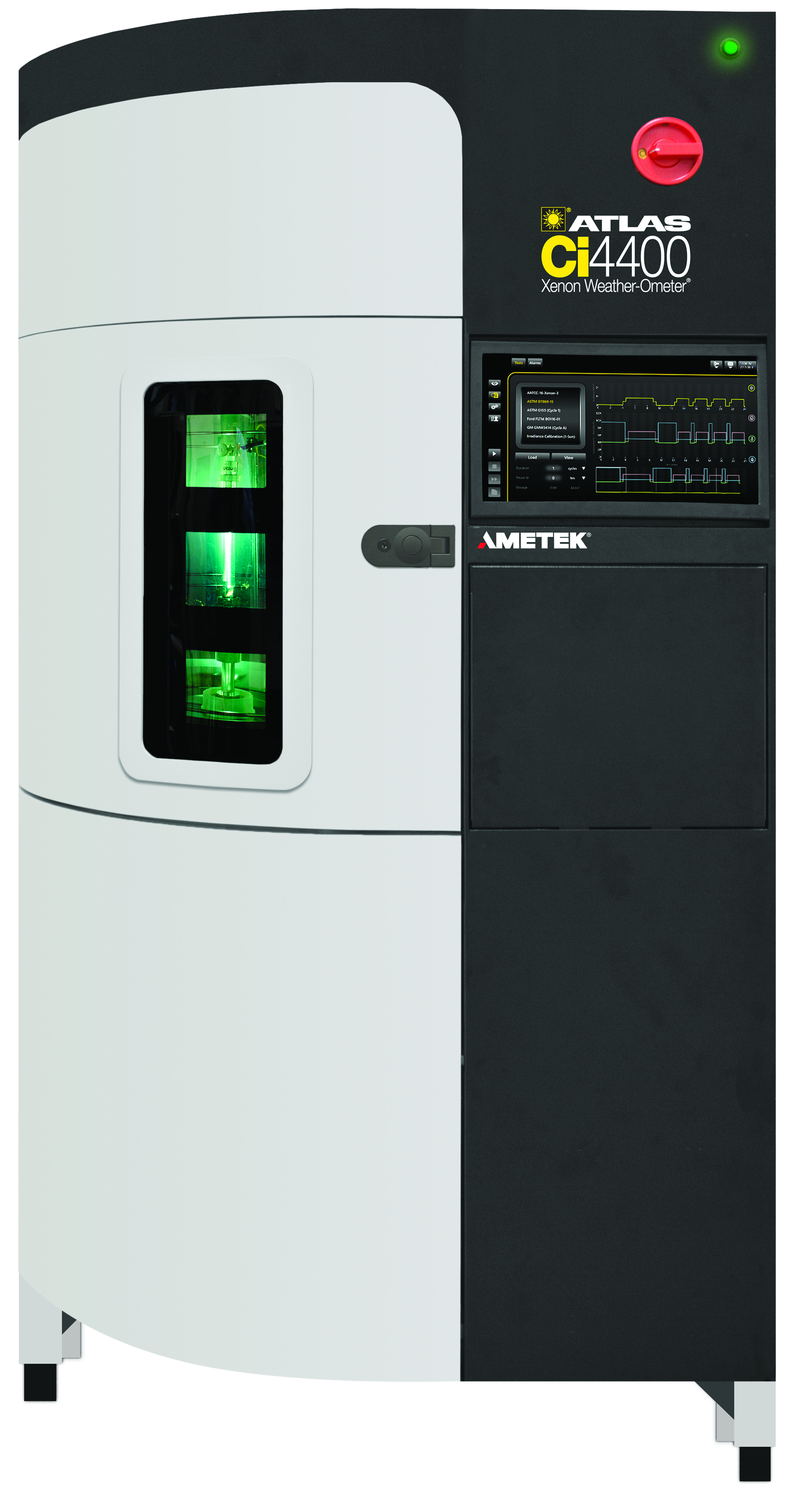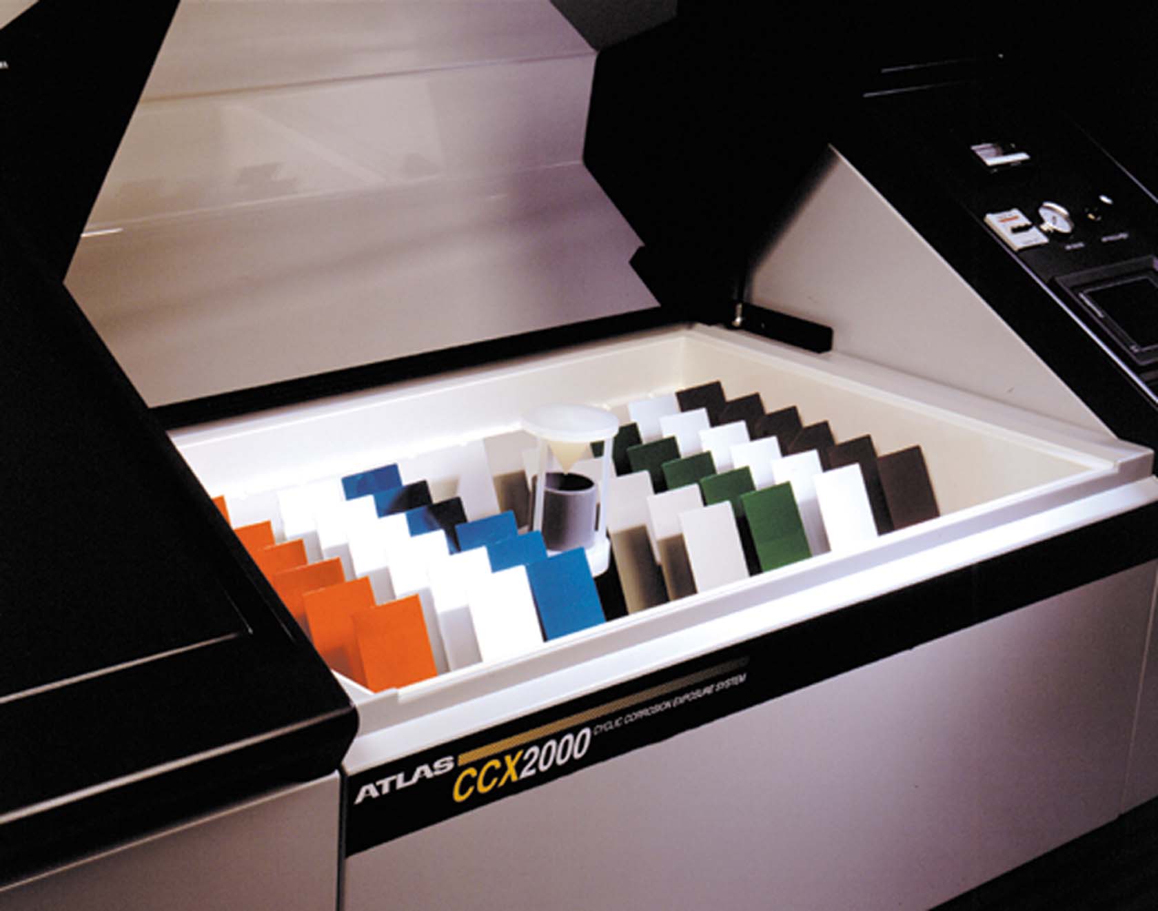 arc au xénon de la série Ci d’Atlas. Ce sont des instruments qui sont spécifiés ou que l’on retrouve fréquemment dans les services de R et D des fabricants de produits électroniques de grande consommation et les laboratoires de qualité de la chaîne d’approvisionnement. Les instruments de la série Xenotest peuvent également être utilisés, particulièrement pour les petits coupons et plaques d’essai des matériaux. Les instruments de la série Ci et