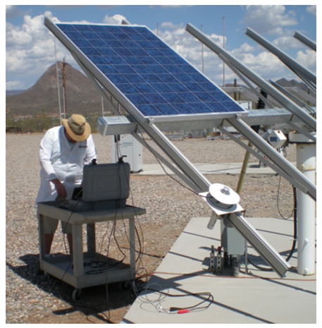 - Des tracés de courbes I-V (en naturel ou en régime permanent avec simulateur solaire)