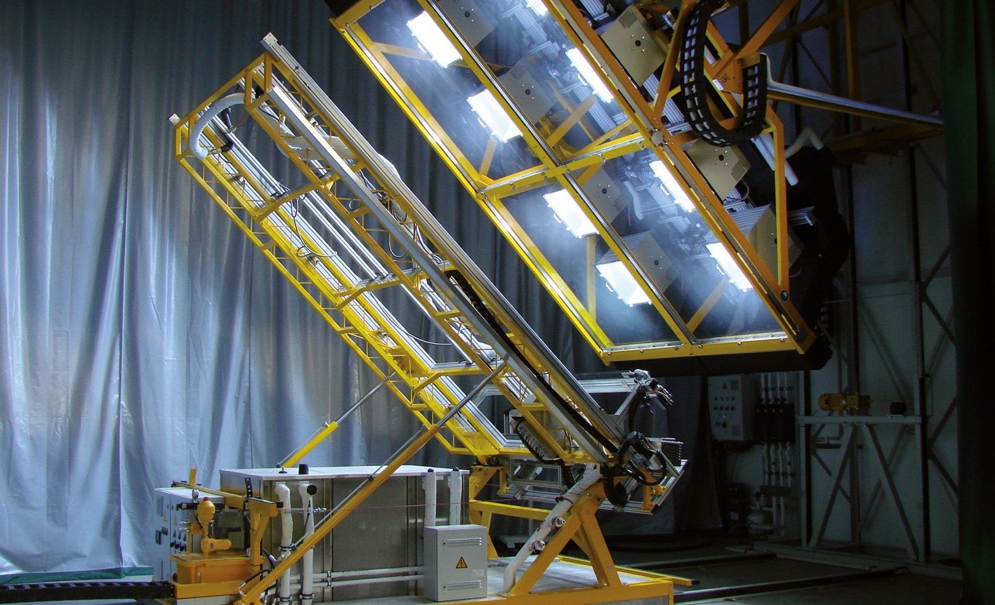 Des essais thermiques solaires de plus grande envergure peuvent être effectués en laboratoire grâce systèmes d’essais personnalisés Atlas. Avec luminaires de simulation solaire aux halogénures métalliques des Des expositions solaires/aux intempéries à grande échelle peuvent être effectuées dans les grandes chambres solaires/climatiques d’Atlas dans le laboratoire d’Arizona.