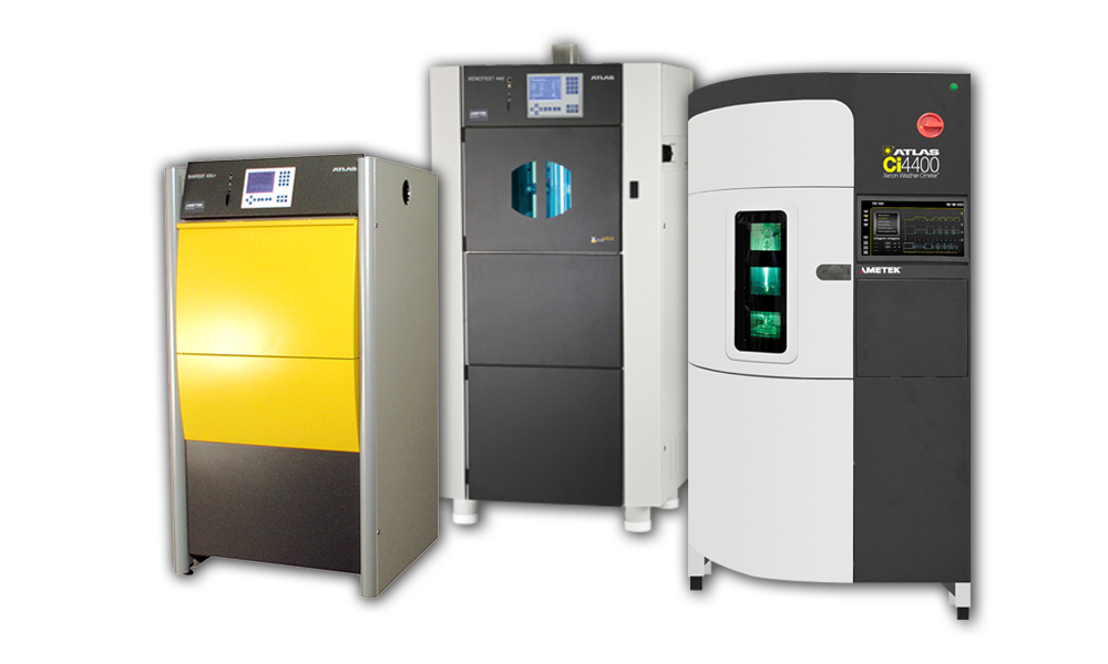 Des matériaux tels que les revêtements et polymères sont soumis à des essais de résistance aux intempéries sous forme de coupons ou plaques d’essai dans les Weather-Ometers de la série Ci, les appareils