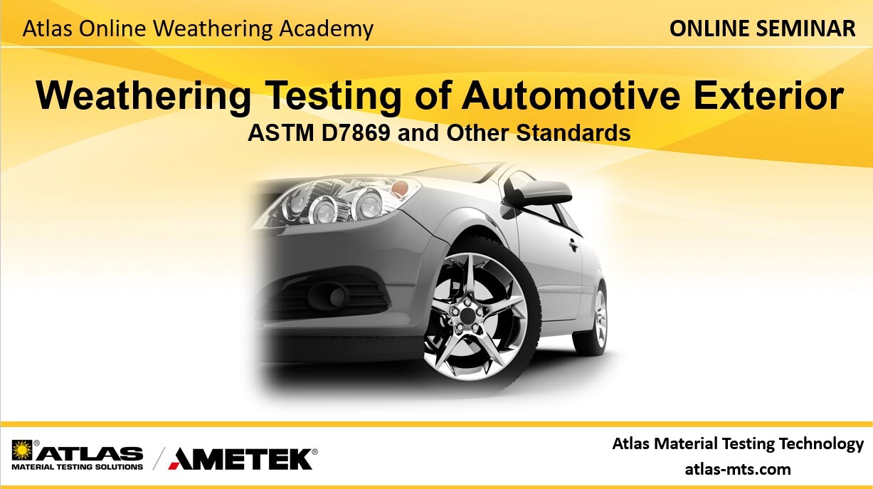 ASTM D7869 et autres tests de résistance aux intempéries pour l'extérieur de l'automobile - Séminaire en ligne Atlas - Anglais