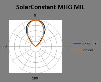 SolarConstant MIL fait appel à un concept multilampe unique, idéal pour les cycles solaires diurnes tels que définis dans MIL-STD-810G, méthode d’essai 505.5 Rayonnement solaire (Procédure I). - détermination de la chaleur produite par des cycles de rayonnement solaire de 24 heures.