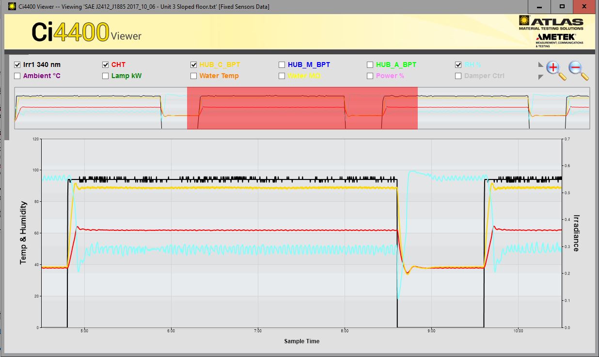 VXView Reader et Ci4400 Viewer peuvent être utilisés pour afficher les paramètres de test communs, mais aussi des données du système S³T (température de surface spécifique des échantillons). Le programme fonctionne avec tout ordinateur équipé de Windows. Il est facile à installer et accessible à partir d’une icône sur votre bureau. WxView Reader peut lire les données des appareils Weather-Ometer® Ci3000/Ci4000/Ci5000 fabriqués depuis 2011, Xenotest® ou SUNTEST® (XXL / XLS). Le Ci4400 Viewer est utilisé pour lire les fichiers du Ci4400 Weather-Ometer.